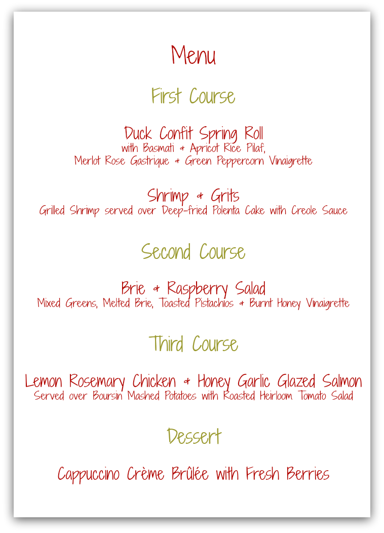Jericho National Golf Club Menu In New Hope Pennsylvania Usa